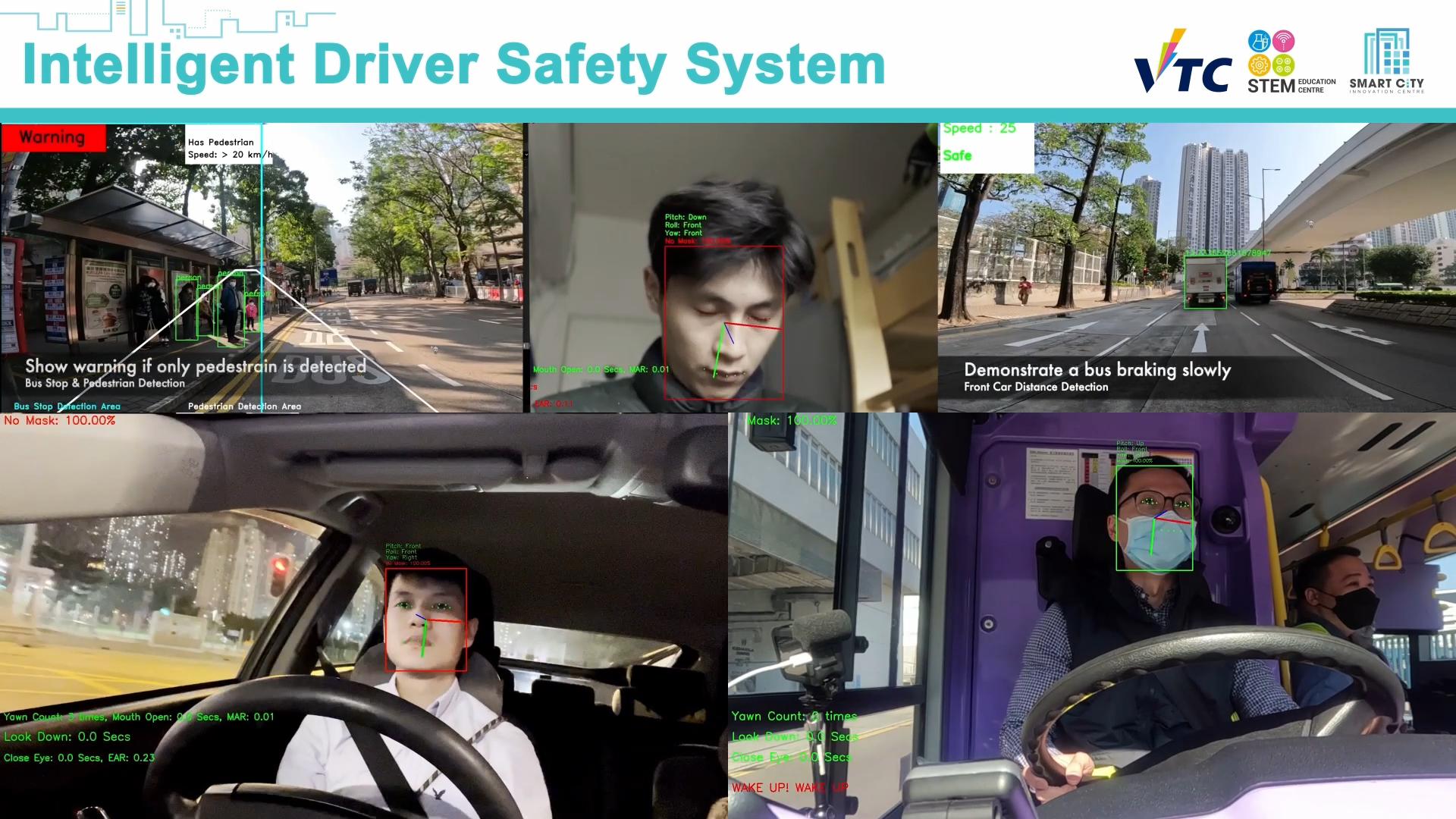 In urban areas like Hong Kong, traditional pedestrian detection systems often trigger false alarms when buses approach bus stops. To address this issue, our system utilizes adaptive pedestrian detection. When a bus stop is detected, the system intelligently adjusts the alert mechanism. Even if a pedestrian is in the detection area, the alert will not be triggered if the bus speed is relatively low. This adaptive feature ensures accurate alerts and reduces unnecessary distractions for the driver.